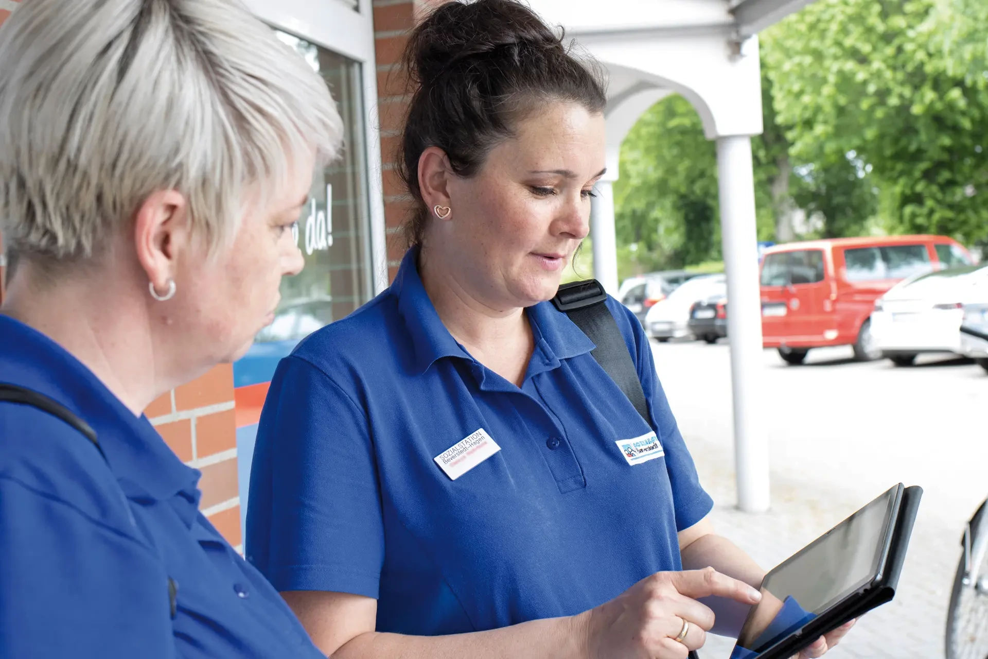 Bei uns bist Du nicht allein. Nach einer individuellen Einarbeitungszeit, startest Du in Deine erste eigene Tour, das bedeutet aber nicht, dass Du von nun an komplett auf Dich alleine gestellt bist. Unser kompetentes Team im Büro und die Pflegekräfte im Dienst stehen Dir bei Fragen gerne mit Rat und Tat zur Seite. Eine sich ständig aktualisierende Software ermöglicht eine Echtzeitkommunikation zwischen allen Kolleg*innen. So bist Du immer auf dem aktuellsten Stand und kannst unsere Patient*innen optimal versorgen.